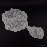 Représentation de la topographie de l'île de Tahiti à l'échelle.